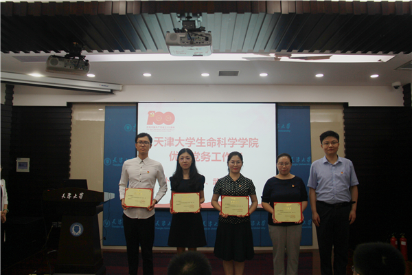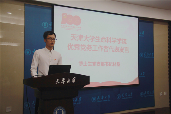 天津大学优秀共产党员代表、生命科学学院党委学生工作办公室主任、团委书记孙万蜜,天津大学生命科学学院优秀党务工作者代表、博士生党支部书记林鋆作交流发言。