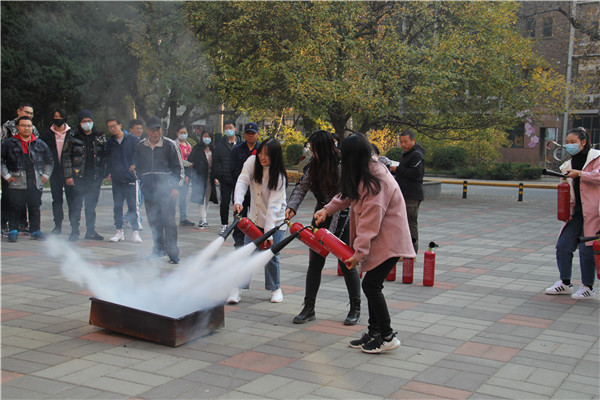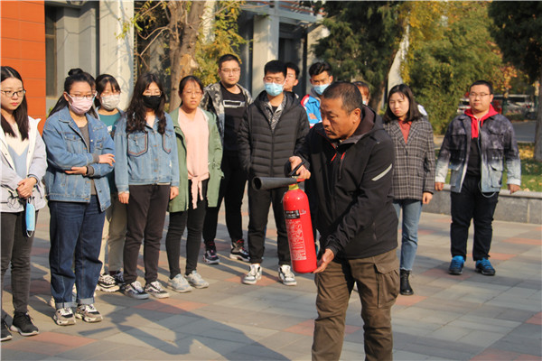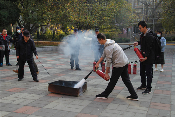 校保卫处防火科老师强调了组织消防演练的必要性和重要性,介绍了疏散逃生基本常识,并详细解说了灭火器材的使用方法。讲解结束后,学院师生在15教学楼前进行了消防演练,在场师生纷纷进行实地操作,掌握了灭火器的正确使用方法。