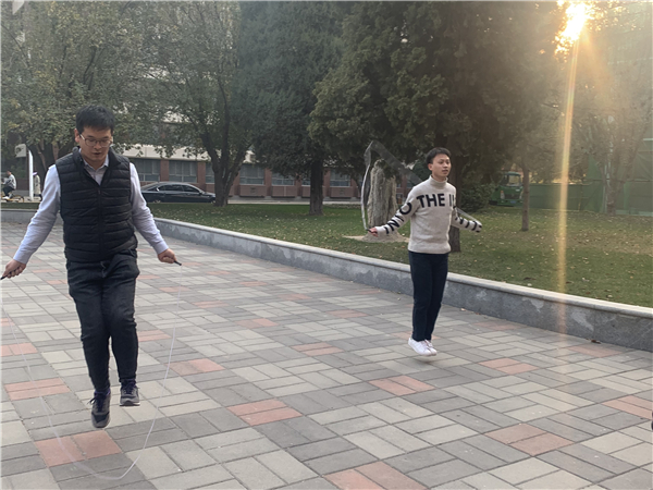 11月10日,在生命科学学院15教学楼门前小广场,生命科学学院工会组织开展了教职工跳绳比赛。