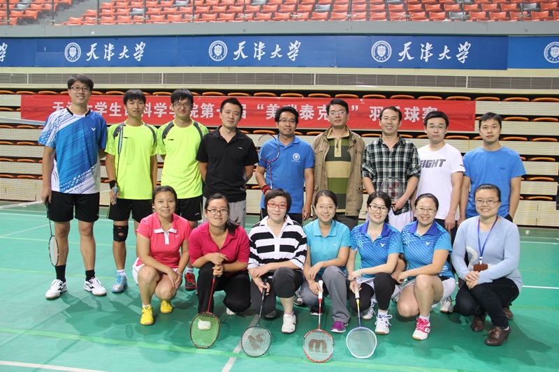 “好球!”“加油!”生命科学学院第一届“美瑞泰克杯”羽毛球赛在师生们的呐喊声中拉开了帷幕。2014年10月31日,在校体育馆举行了开幕式及各项比赛初赛,全院18名教职工报名参加了比赛。校工会教职工文化活动中心主任王钢老师代表校工会祝贺生命科学学院羽毛球赛开幕,希望教师借助比赛能够很好地锻炼身体、放松身心、增进友谊。 11月5日,进行了半决赛和决赛的较量。经过激烈的角逐,产生了男单、男双、女双、混双的冠亚季军。 颁奖仪式上,美瑞泰克科技(天津)有限公司副总裁刘磊和生命学院党总支书记张蕾为各项比赛冠军、亚军和季军颁奖。张蕾代表学院对美瑞泰克科技(天津)有限公司的支持表示感谢,希望生命学院工会能够将羽毛球赛这样的活动做成系列,吸引更多的老师参加。