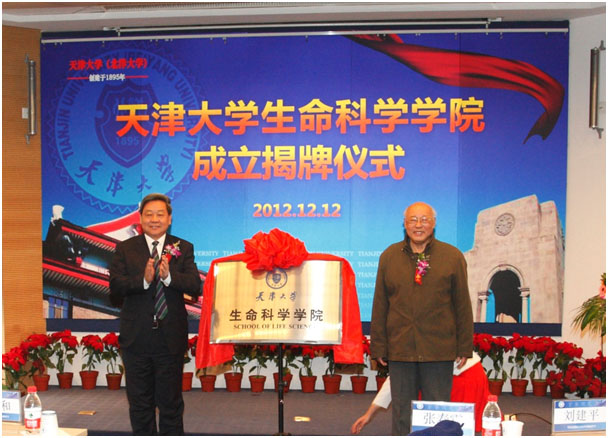 会议宣读了天津大学 “关于成立‘天津大学生命科学学院’的决定”。饶子和院士与张春霆院士一同为“天津大学生命科学学院”揭牌。