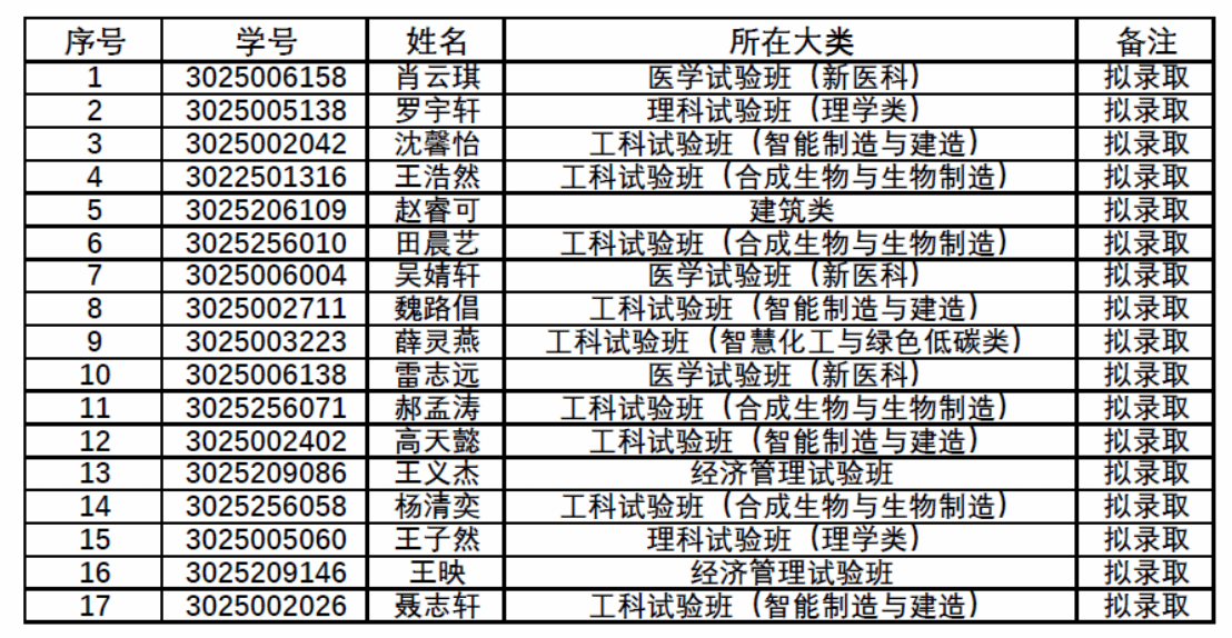 现将生命科学学院2025年生物科学(拔尖班)选拔拟录取名单公示,详情如下。