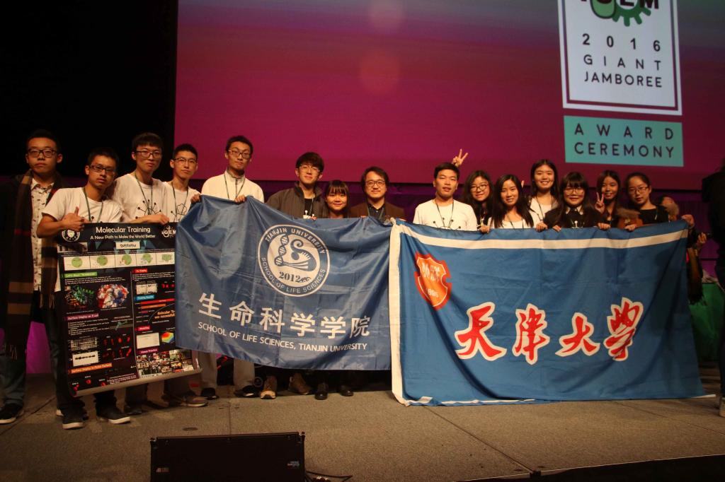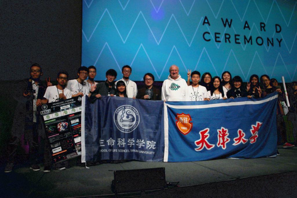 在此次比赛中,生命科学学院iGEM“本科生代表队”因在跟组委会沟通中产生误会,被“阴差阳错”的分在了大赛的“研究生组”。虽然面临极其不利的形势,但全体队员们顶住了极大的压力,凭借过硬的实验结果和良好的竞赛风貌,依旧在“研究生组”中脱颖而出,收获金牌一枚﹑“最佳环境项目”单项奖(Best Environment Project),以及Best Model﹑Best New Basic Part﹑Best New Composite Part 和Best Part Collection四个单项奖提名的突出成绩。正是平时每一位队员对自己的高、严标准严要求和他们对科研的热情和勇于创新的精神,让天大学子在世界的舞台上充满信心,充分展示了我校在创新人才培养上的突出成绩。