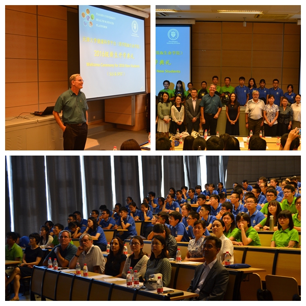 Jay Siegel introduced the guests who attended the welcome ceremony, and gave the new students a warm welcome. Jay Siegel then gave an inspiring speech. He encouraged the students to find their own interest in the university, to evoke the learning enthusiasm and to cultivate a rigorous scientific attitude, which will determine their future direction of development. He hoped every student can make good use of their university life, such as contacting more teachers, doing more experiments and carrying out more scientific research projects. He wished everyone can become a real leader in a certain field. He also mentioned that the two schools had provided a good platform for students. He really hoped that the students of SLS and SPST can make good use of the resources to communicate and help with each other, thus to make contributions to human health.