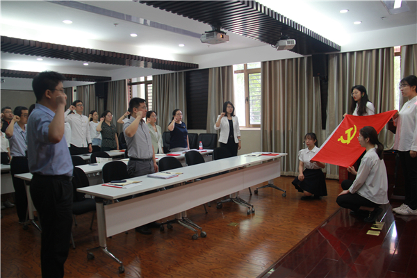 最后,李一昂带领学院新发展党员代表宣誓、全体与会党员重温入党誓词,教育引导师生党员牢记初心使命,坚定理想信念,接续百年奋斗。