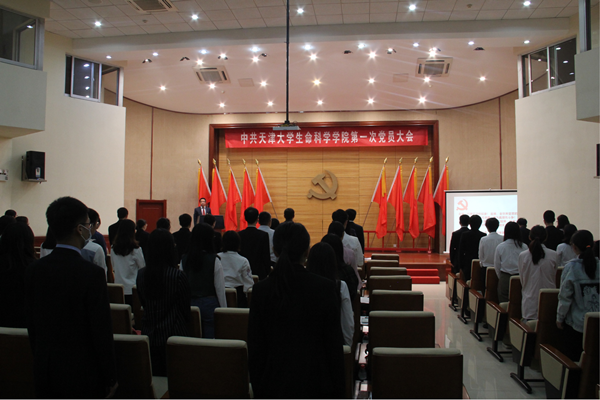 在雄壮的《国际歌》中,中共天津大学生命科学学院第一次党员大会胜利闭幕。