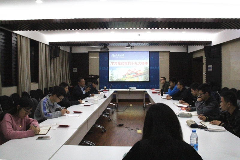 11月9日晚,天津大学党委副书记、副校长刘东志在15教学楼110,为生命科学学院本科生党支部宣讲党的十九大精神。生命科学学院党总支副书记赵剑、本科生辅导员和本科生党员、积极分子参加了座谈会。