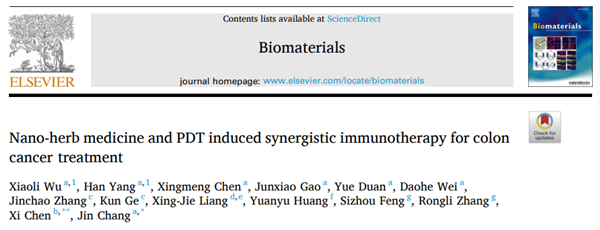 Xiaoli Wu#, Han Yang#, Xingmeng Chen, Junxiao Gao, Yue Duan, Daohe Wei, Jinchao Zhang, Kun Ge, Xing-Jie Liang, Yuanyu Huang, Sizhou Feng, Rongli Zhang, Xi Chen*, Jin Chang*. Biomaterials 2021, https://doi.org/10.1016/j.biomaterials.2021.120654.