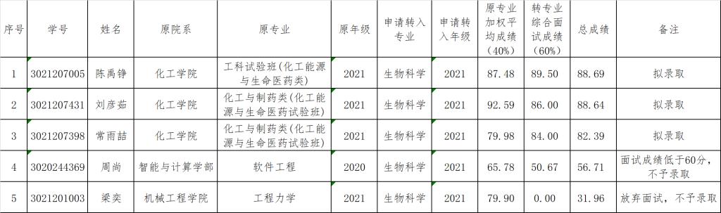 根据《关于做好2022年本科生转专业工作的指导意见》和《生命科学学院2022年本科生转专业实施细则》和相关规定和要求,现将生命科学学院2022年本科生转专业综合成绩及拟录取名单公示,详情如下。